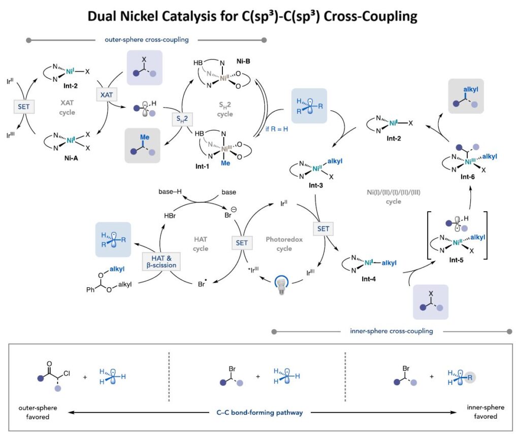 Recently published research in JACS followed a two-stage evolution from a “single Ni catalyst” approach to a “dual Ni catalyst” approach. Through refinement of mechanistic hypotheses and reaction conditions, the authors identified a potential divergence of the Ni precatalyst to two active species with orthogonal roles. This led to a shift in optimization efforts toward strategically designing a dual Ni catalyst system that ultimately enabled significant reactivity enhancement.